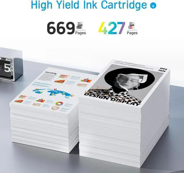 Estimated Page Yield: High yield black for hp 65xl black ink cartridge up to 669 pages, 65XL color for hp 65 color ink cartridge up to 427 pages. (5% coveragae*A4 paper size) ^^