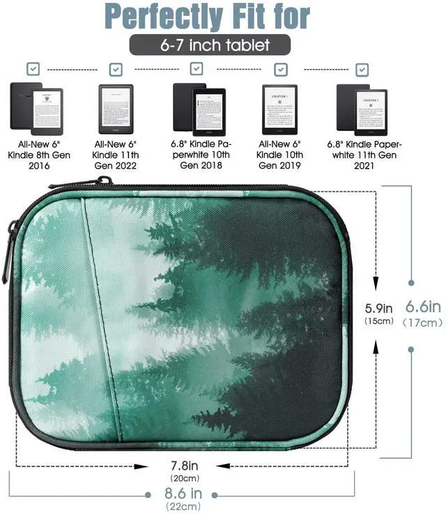 COMPATIBILITY - Precise fit for 6-7 Inch eReader devices, including All-New 6" 7"E-Reader book, 6" 7" Kobo Nook Tolino, paperwhite (12th Generation, 2024 release), paperwhite Signature Edition 2024/2021, 7" Colorsoft Signature Edition, 6.8" Paperwhite (11th Gen. 2021), 6" Paperwhite 10th 7th 6th 5th Gen 2018 2015 2013 2012. ^^ DURABLE POLYESTER MATERIAL - Made from water resistant, sturdy and very durable polyester material, it can effectively keep your precious tablet from accidental bumps and scratch in daily use. ^^ MULTIPLE POCKETS - This sleeve comes with multiple compartments, offering enough space for your tablet and other accessories like cables, mouse, earphone, notes, wallet, cards and more small items.