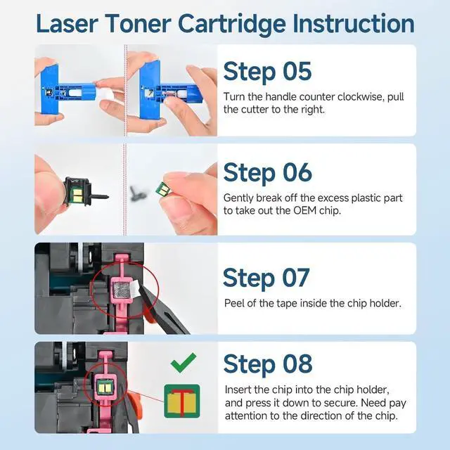No Chip Included: The 218A toner cartridges do not have chips. To use them, transfer the chip from your old cartridge to the new one. Please refer to the user guide for detailed installation steps ^^