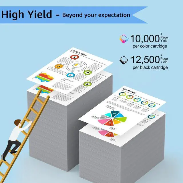Page Yield: 12, 500 pages per black toner cartridge and 10, 000 pages per color toner cartridge at 5% coverage of A4 paper ^^ Compatible for