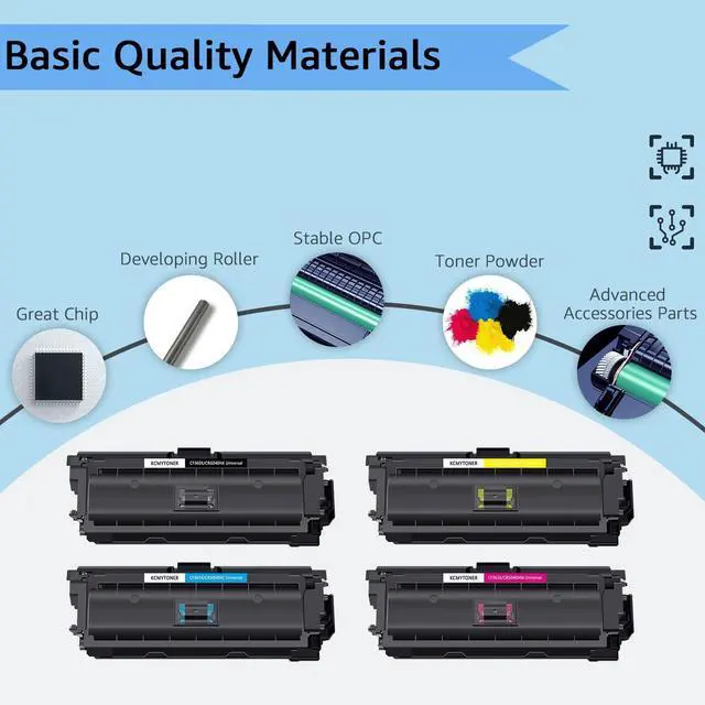 HP Printer: Color Enterprise M552dn, M553n, M553dn, M553dh, M553x, MFP M577dn, MFP M577f; Flow MFP M577c, Flow MFP M577z. ^^ KCMYTONER Toner delivers the reliable printing results: sharp text, clear images, vivid color, crisp graphics and resists-fading/smudging. Easy to install. Perfect partner with your printer and copier. Perfect compatibility.