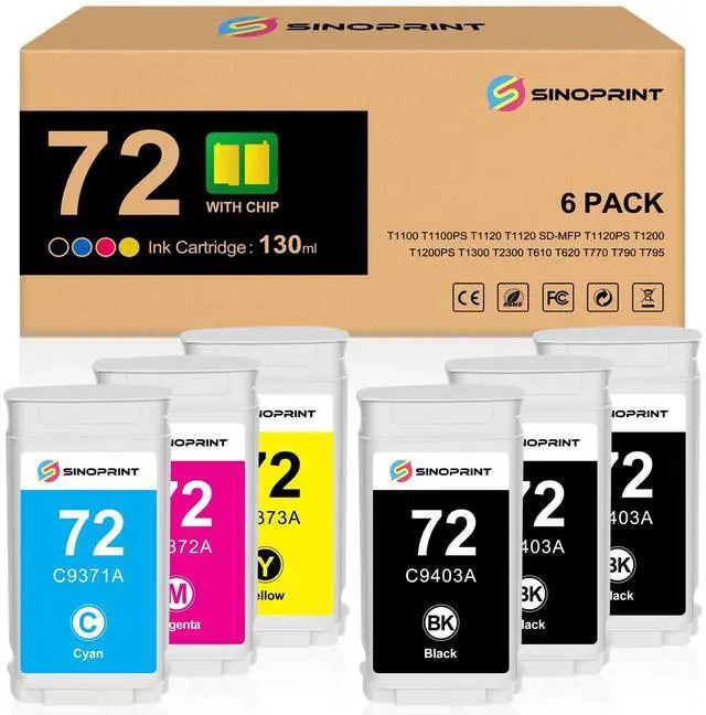 Original Part No.: SINOPRINT Compatible 72 C9403A C9370A C9371A C9372A C9373A C9374A Ink Cartridge. (130ML, MK/PK/G/C/M/Y) ^^