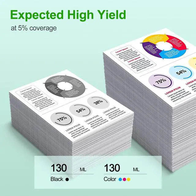 Page Yield: 130ML per 72 Black Ink Cartridge, 130ML per 72 Color Ink Cartridge 5% coverage.