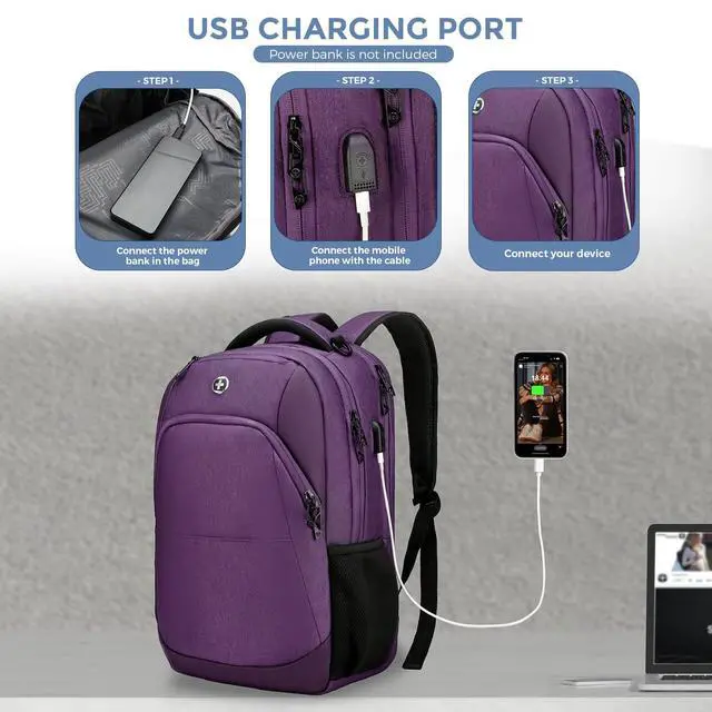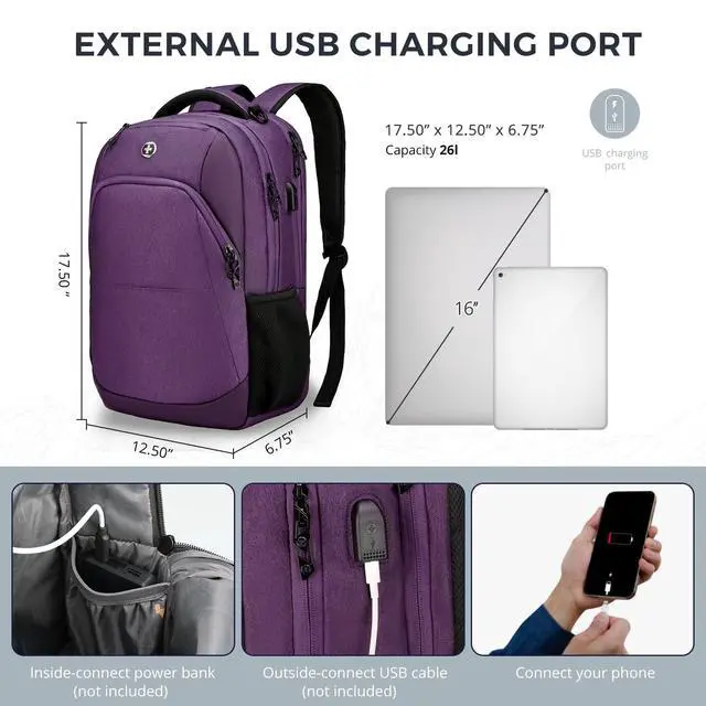 INTEGRATED USB CHARGING PORT: Laptop backpack with USB charging port, offering quick access to charge your electronic devices such as smartphones, tablets, kindles and all other USB devices on the go while using them at the same time.