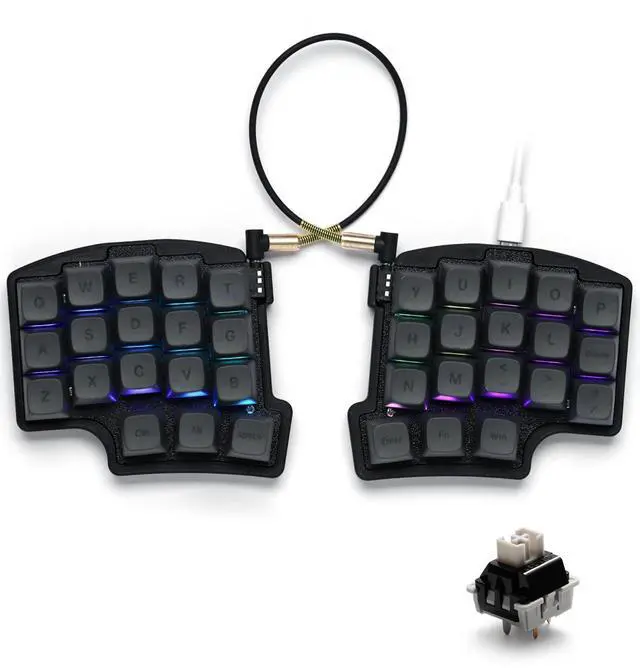 Ergonomic design: The split mechanical keyboard supports adjustment of keyboard spacing, tilt angle, rotation angle, etc. It adopts a 3x5 column orthogonal split layout with 3 thumb keys on each hand, repositioning frequently used keys to an ergonomic thumb group for maximum efficiency, reducing wrist fatigue caused by long-term typing and repetitive movements, and reducing the risk of tenosynovitis.