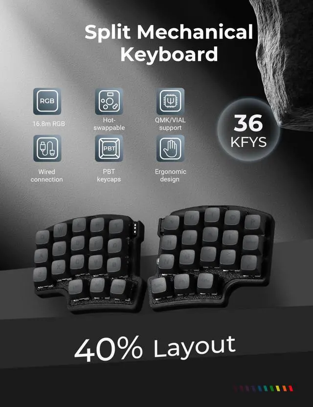 ^^ Programmable keys: All keys are fully programmable. You can remap any key through VIAL/QMK and create a custom quick access layer to speed up your workflow. With a simple mouse click and setting, any key can be mapped to a different function to create a keyboard layout and function settings that fully meet your needs, improving the comfort and efficiency of use.