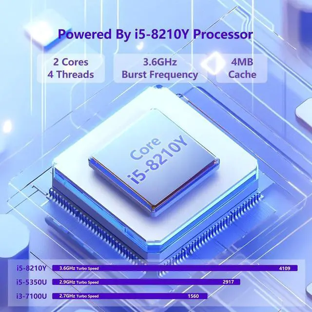 Daily Tasks: A fast dual-core i5-8210Y processor ( 1.6GH z base, up to 3.6GH z turbo) paired with 16GB (dual 8GB) DDR3 RAM ensures smooth multitasking. Great as a budget laptop for studying, office work, or streamingoutperforming many traditional laptop computers in its class. ^^ 16