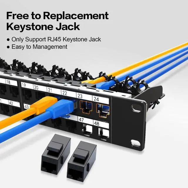 Professional Appearance: The clean, minimalist design of the panel enhances the look of your network setup, making it suitable for both home and professional environments. Package Include1*1U 48 port Keystone Patch Panel+48pcs Cat6A Keystone JackComprehensive SupportOur worry-free 12-month warranty, and friendly customer service. Our dedicated customer service team is here to support you every step of the way. Whether you have questions about a product, need assistance with an order, or require help with returns and refunds, were here to help, 24/7.