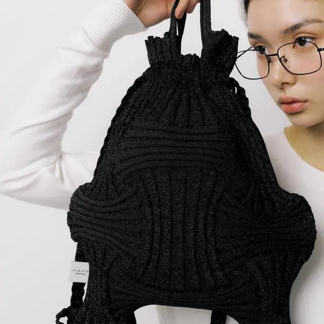DescriptionIntroducing the stunning Pleatsmama New Bow Backpack in elegant Glitter Stone Brown. This sophisticated backpack features an eye-catching pleated design with intricate curved patterns that create a mesmerizing visual texture. The drawstring closure at the top adds both functionality and style, while the adjustable shoulder straps ensure comfortable carrying. The unique architectural pleating technique gives this backpack a distinctive sculptural quality, making it stand out as both a fashion statement and practical accessory. Perfect for those who appreciate artistic details in their everyday items, this backpack combines contemporary design with practical utility.