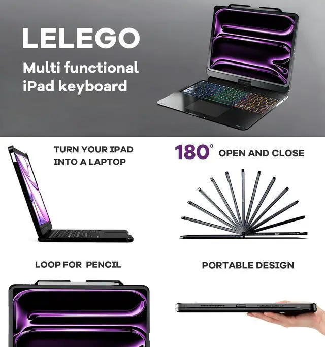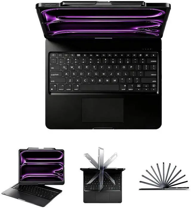 ipad air 13 inch case with keyboard enables easy typing in low light or at night, paired with eye-protective soft light. ipad 12.9 pro case with keyboard equipped with full PadOS multimedia shortcuts, you can quickly adjust volume, brightness, or lock the screen for ipad pro m5 13 inch case with keyboard. The 500mAh rechargeable battery lasts up to 200 hours (backlight off) or 3 hours (backlight on), keeping you productive day, night, or on the go. ^^ 360 Rotation & 7 Versatile Modesipad 13 inch case with keyboard lets you rotate 360, flip 180, and switch between 7 modes (typing, drawing, watching, presenting).
