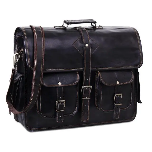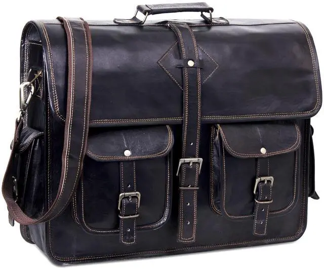 DescriptionAuthentic, Timeless Style With the unquestionable Quality & Durability of Top-Grain genuine leather satchel for men and women. At Hulsh, we design the most good looking and practical womens and mens leather bag. Full-grain genuine mens messenger bags for work using 1st grade goat leather and lined with canvas. This Unisex bag can fit 2 laptops up to 17 inch The bag would fit equally well in formal business meetings or casual outings or in college classes. Lightweight yet durable, This leather as a characteristic gets darker and softer with use..