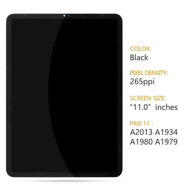 Includes: 1x For IPAD PRO 11 1st Gen LCD Display Touch Screen Replacement1x For IPAD PRO 11 Tempered Glass1x Strong Suction Cup2x Triangle Opening Tools1x Card Pin1x Plastic Spudger1x Free TapeBefore Installation NotesTips 1: Test before installationWhen testing, do not remove any protective film or tags. Please pay attention to the problem of static electricity. Before attempting any repair, be sure to ground yourself is an ESD (electro static discharge) strap. This will prevent static electricity from damaging the electronic components within the phone. Ensure you wear eye protection and use caution not to cut your finger with the glass splinters.