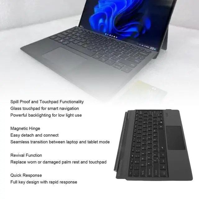 [OEM Replacement] This palmrest touchpad keyboard fit for Latitude 7320 7310 Detachable device, fit for K19M device, fit for 0YJR01 device, fit for device, ensuring seamless compatibility with your device for a no hassle typing experience. ^^ [Spill Resist Design] The palm rest touchpad keyboard features a spill resist design to protect against accidental liquid exposure, while its integrated touchpad allows for intuitive navigation without touching the screen. ^^ [Magnetic Hinge] The laptop palmrest touchpad comes with a magnetic hinge for easy detachment or attachment, enabling smooth transitions between laptop and tablet modes for uninterrupted workflow.