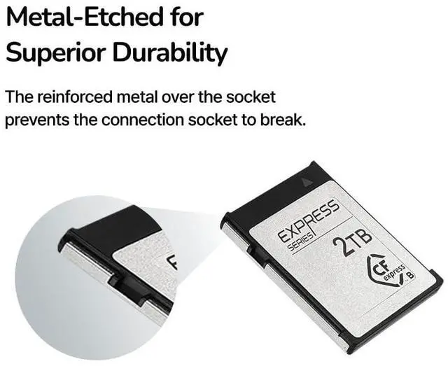 FOR PROFESSIONAL CAMERAS AND CAMCORDERS of Full HD, 4K, 6K, 8K+ recording with CFexpress TypeB memory slot. ^^ SUSTAINED DATA TRANSFER read speeds of 1, 700MB/s and write speeds of 1, 000MB/s for flawless streaming and recording. ^^ THERMAL-EFFICIENT MECHANICAL DESIGN to achieve the full frame rate raw recording operation without frame-drop. ^^ STICKER-FREE DESIGN for better thermal dissipation and without concern for wear-out. ^^ LIMITED WARRANTY 3 years and Data Recovery Service for registered users.