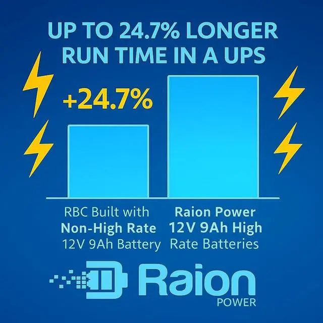UPS: 24 Volts / 9 Amp Hours of capacity built with high-rate discharge cells engineered specifically for UPS systems for longer runtime and improved backup performance - up to 24.7 % longer runtime when compared with an RBC124 assembled with non-high rate 12V 9Ah batteries ^^ Provides up to 24.7 % longer run time when compared to an RBC124 assembled with standard non-high rate 12V 9Ah batteries. This unit is compatible with and will also provide an extended runtime for your UPS units that require APC RBC123 batteries.