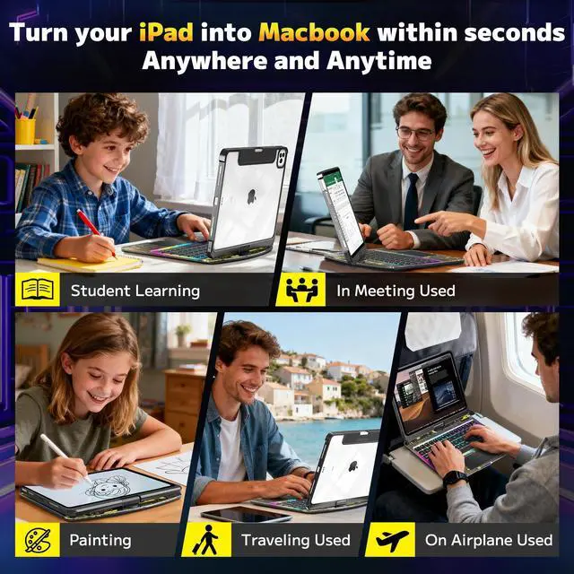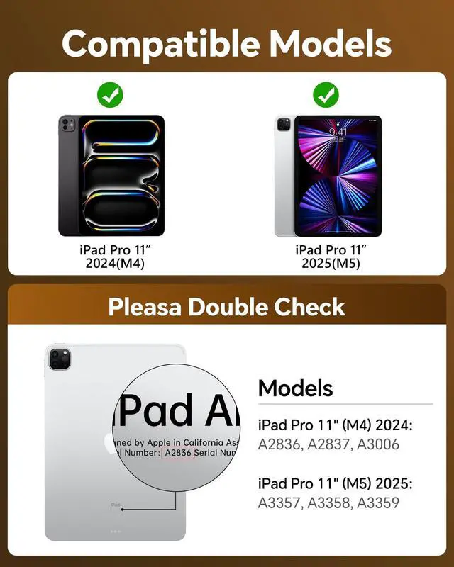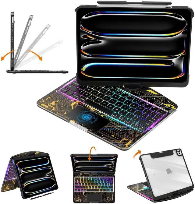 Precise Keyboard Case Compatibility This keyboard case is only compatible with the 2024 11-inch iPad Pro (M4 chip), corresponding to models A2836 and A2837. Please check the model number starting with "A" on the back of your device before purchasing. This also provides a smoother user experience with the iPad Pro 11 M4 keyboard case. ^^ iPad Pro 11 m4 Case with Keyboard Stand that Can Rotate 360 The bearing hinge design supports 360-degree rotation, allowing you to find the most comfortable viewing angle for your iPad keyboard case from any angle. ^^ Keyboard Case Suitable for Convenient Use in Multiple ScenariosWhether working from home, studying on campus, or traveling outdoors, this iPad Pro 11 Case with Keyboard can be used seamlessly.