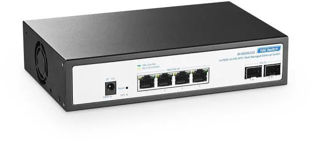 Port 10G: 4 x 10Gbps ethernet ports and 2 x 10Gbps SFP+ slots, enable high-bandwidth connected, 1-4 RJ45 port auto-adaptive 10G/5G/ 2.5G /1000M/100M, support wider rate range, adapts to different rate class devices.