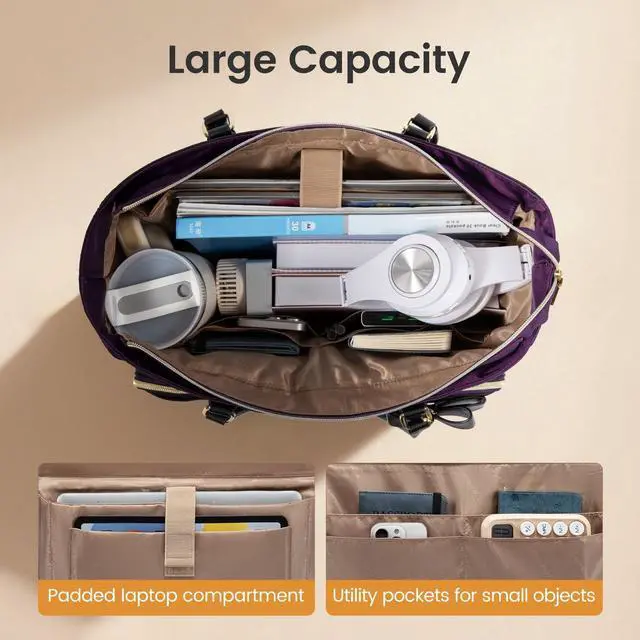 With Large Cup Holder: Designed for your large water bottle, our work bags for women features an elastic side pocket that holds up to 44oz, secured with an elastic metal buckle for added stability. The innovative design allows the cup's handle to fit perfectly, ensuring easy access. This practical side pocket perfectly suits teachers and nurses commuting daily, blending professional style with convenient functionality. ^^ Large capacity