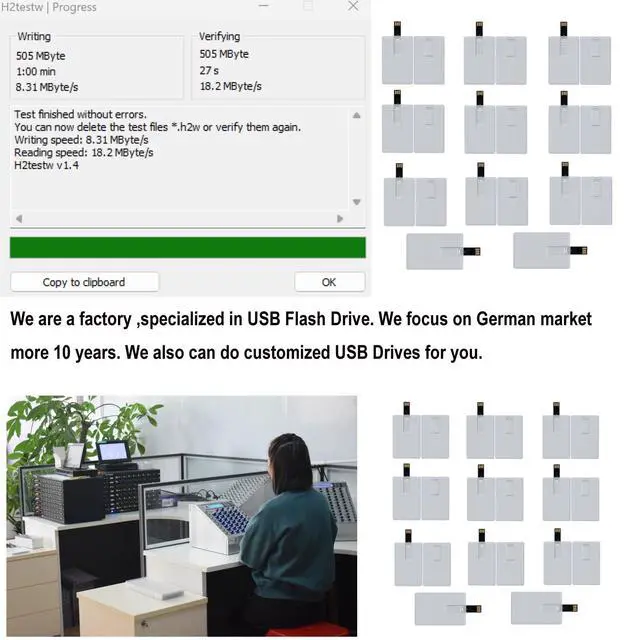 USB drive: 3.31 * 2.05 * 0.08 inches, the card shape 512MB, easy to carry into your wallet. ^^ We are a factory, specialized in USB Flash Drive more 10 years. And we focus on German market on B2B. We also do customized logo for you.
