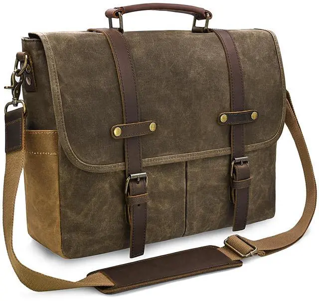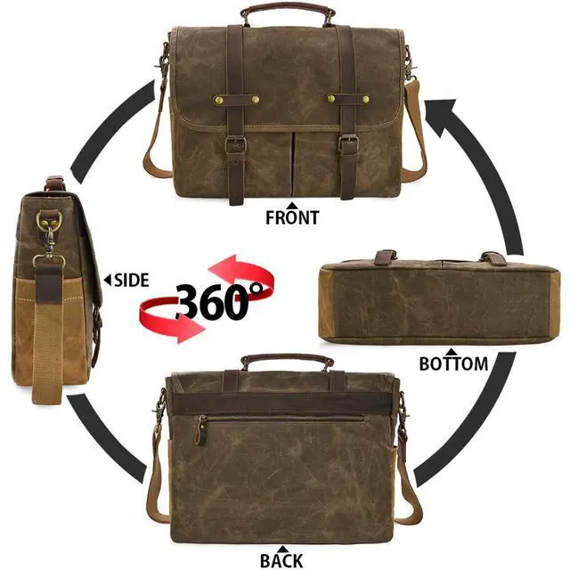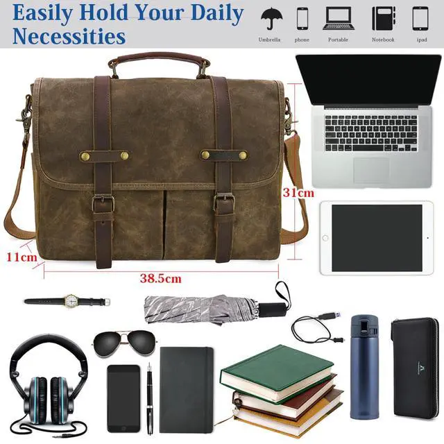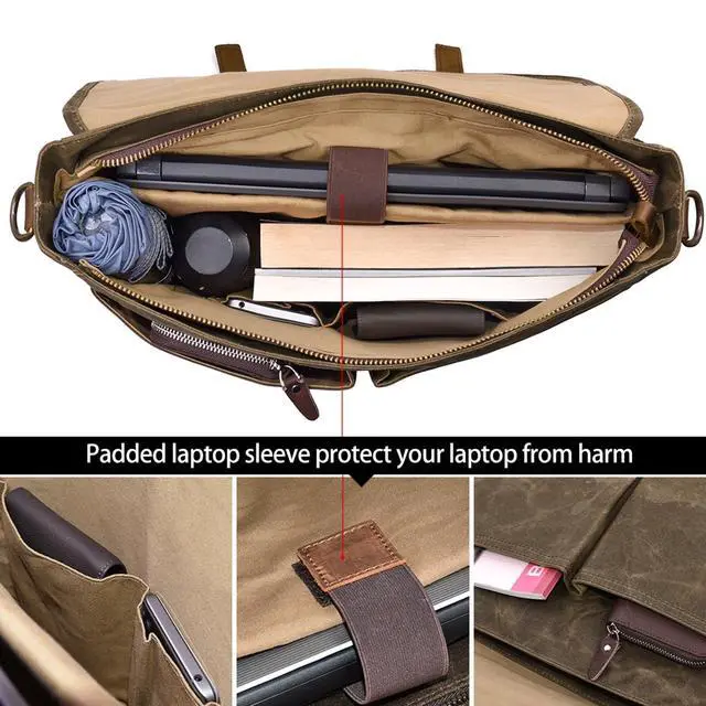 REMOVABLE & ADJUSTABLE STRAP: Shoulder strap of canvas messenger bag is detachable and can be adjusted at the most suitable length. Padded handle and strap are also helpful to ease your fatigue. ^^ CONVENIENT MAGNETIC SNAP & PADDED LAPTOP SLEEVE: Laptop messneger bag is double secured by magnetic snaps and zippers. Inner padded laptop sleeve fits for 15.6 inch laptop and cohesive seal ensure it to be steady.