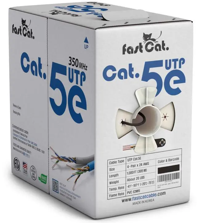 fast Cat. Cat5e Ethernet Cable 1000ft - 24 AWG, CMR, Insulated Bare Copper Wire Cat 5 ethernet Cable with FastReel - 350MHZ / Gigabit Speed UTP Cable Cat5e - CMR (Black)
