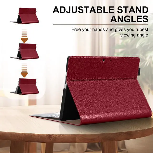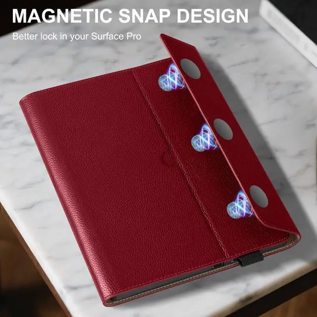 CompatibilityOnly compatible with Microsoft Surface Pro 11 (2024) 13 inch, Surface Pro 10 (2024) 13 inch, Surface Pro 9 (2022) 13 inch. Not compatible with any other devicesPlease confirm the model before your purchase. ^^ Material &CraftThis protective cover is made of high-quality genuine leather, which has delicate texture, elegant appearance, bringing your great soft touch feel. Precise cutouts let you access to all ports, speakers, controls and cameras. ^^ Auto Sleep/WakeSupport auto-wake/sleep function with easy snap on and off the iPad protective case to help extend your iPads battery life.