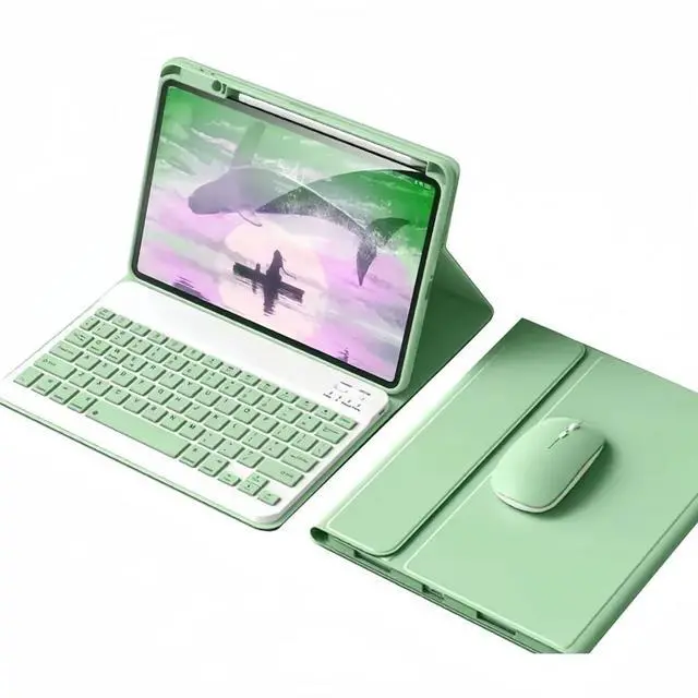 Keyboard+Case+MouseBluetooth keyboard and mouse set, making your tablet as convenient as a laptop. The protective case can perfectly wrap the tablet and keyboard together, making it easy to carry.The protective case comes with a pen slot, which can be used to store your pencil.