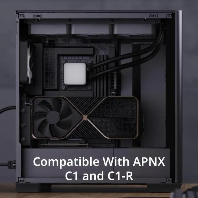Vertical GPU Holder Kit 1 by APNX is a vertical GPU mount with an included PCI Express 5.0 X16 flat line riser cable, allowing the graphics card to run at full speed. It is steel-based for ultimate durability and compatible for use with C1 and C1-R. Available in black or white.