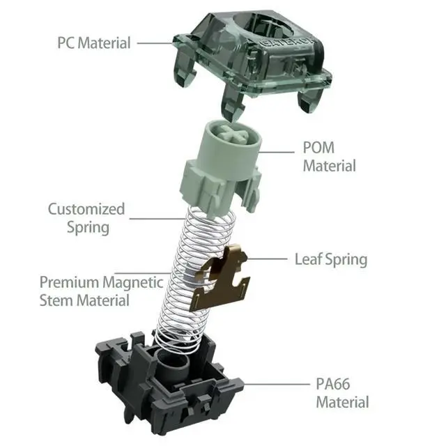 Magnetic Keyboard Compatibility: This magnetic switch N-pole faces down to the PCB board, any keyboard model featuring downward-facing N-pole magnetic switches is compatible with this witch. Please check your keyboard before choosing this item. ^^ Leaf Spring Dynamics Mechanical Heavy Tactile Feel: Anti-Oxidation Alloy Leaf Spring for enhanced durability and a crisp tactile feel. Precision Curve Testing faithfully recreates the classic mechanical heavy tactile sensation. Non-Contact Design preserves the superior lifetime of magnetic Hall effect sensors. Experience both the beloved classic tactile bump and groundbreaking durability.