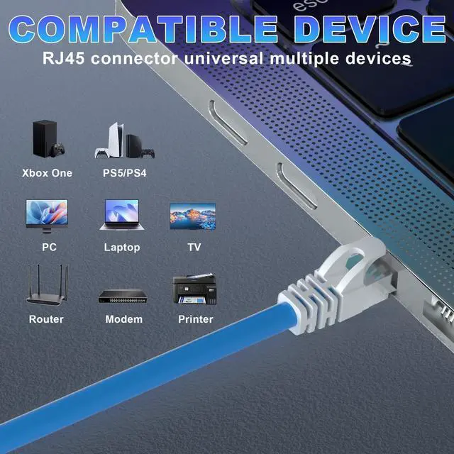Speed Ethernet Cable: Cat 7 network cable with 10Gbps 600MHz higher bandwidth (10 times more than Cat 6) for 10 Gigabit Ethernet, low signal attenuation within 100 meters and fast and stable transmission over long distances. It is suitable for home server applications, HD video chatting, streaming video; supports LAN and a wide range of gaming setups; office video conferencing, data centers, and other scenarios with stable connections, making it a high-quality choice for home and industrial cabling.