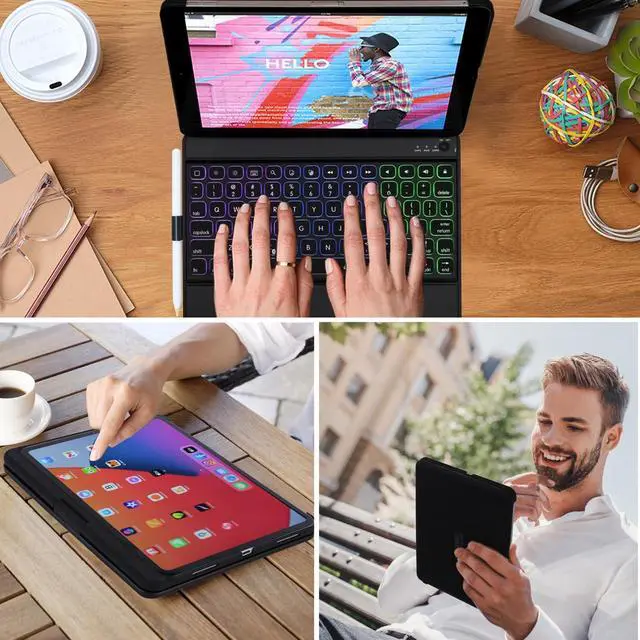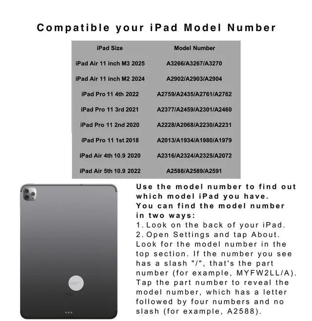 Fit for ipad Air 11 inch M3 2025 (A3266/A3267/A3270) M2 2024 (A2902/A2903/A2904), iPad Pro 11 4th 2022 (A2759/A2435/A2761/A2762), iPad Pro 11 3rd 2021 (A2377/A2459/A2301/A2460), iPad Pro 11 2nd 2020 (A2228/A2068/A2230/A2231), iPad Pro 11 1st 2018 (A2013/A1934/A1980/A1979), iPad Air 4th 10.9 2020 (A2316/A2324/A2325/A2072), iPad Air 5th 10.9 2022 (A2588/A2589/A2591) (Please turn over your device check it at first before purchase) ^^ Your device will be in safe hands encased within a highly durable polycarbonate shell that features both impact resistant corners and a reinforced aluminum hinge ^^ The case features a smart island keyboard attachment with trackpad for optimal typing - ideal for taking fast and concise notes on the move.