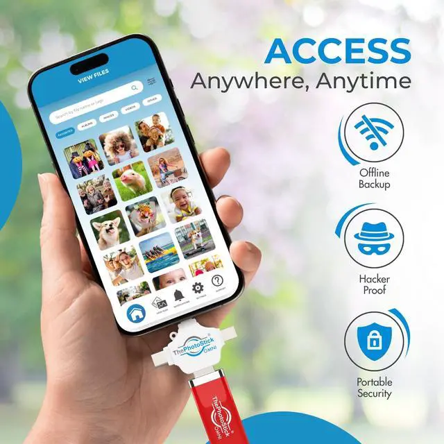 ^^ New year, new memory backups ThePhotoStick Omni is the simple way to declutter your devices, free up space, and start the year knowing your precious memories are safely backed up and organized. ^^ Easy to use with free app Download the app, connect the photo stick with the included adapter, and follow the onscreen steps to save your images, videos, and more. ^^ Broad file format support Compatible with common media types like JPEG, PNG, HEIC, GIF, MOV, and MPEG4. This memory stick works across devices for flexible storage.