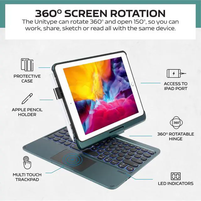 Press "Touchpad" key to lock/unlock the trackpad ^^ Multiple Viewing AnglesThe iPad keyboard case supports 360 degree rotation and 180 degree flipping, equipped with a high-strength gimbaled shaft that allows users to turn or tilt the screen to any direction, giving you multiple viewing angles of your iPad screen. Whether you are at work, studying, traveling or at home, it is perfect for you ^^ Auto Wake/Sleep and Durable ConstructionPrecise cutouts are designed to provide full access to all ports, user interfaces, sensors, speakers, microphone and camera. This versatile iPad Air 11-inch case with keyboard is made of premium smooth TPU material to prevent scratches from accidental drops and bumps.