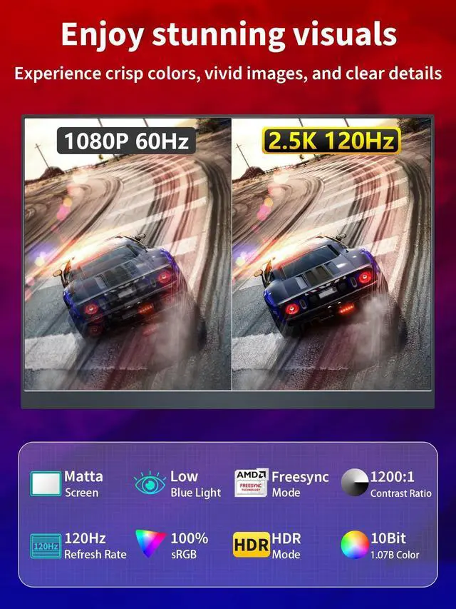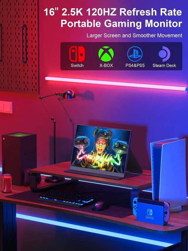 Portable Gaming Monitor: With AMD FreeSync Premium and HDR technology, MagicRaven portable gaming monitor equip a 120 Hz refresh rate screen and it can provide no lag, no ghosting and tear-free game play. This gaming display can protect eyes with Blue Light filtering, Anti-glare and Non-flicker design. ^^ 16" 2.5K