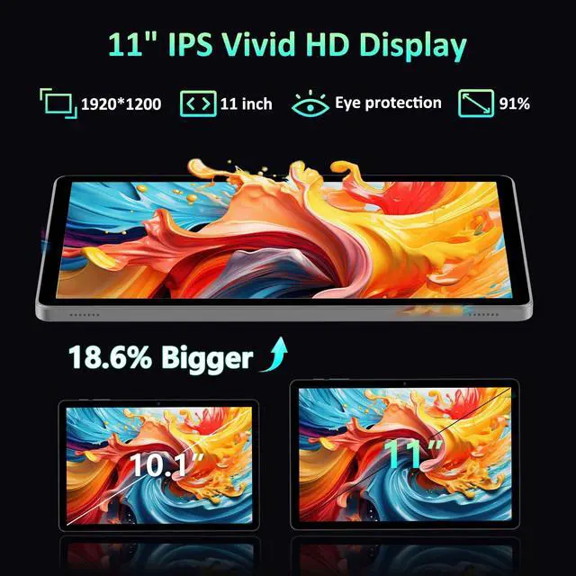 [Pioneering Android 16 with Advanced AI Integration] The M901 tablet leads with the latest Android 16 system, powered by the next-generation T615 octa-core processor. Featuring built-in Google Gemini AI, it offers voice control and intelligent performance optimization, delivering faster app launches and smoother multitasking. ^^ [Immersive 11inch EyeCare Display] Enjoy vivid detail on an 11inch FHD fullylaminated screen with 30nits brightness and TUV Low Blue Light certification. Widevine L1 support enables HD streaming on Netflix and YouTube, enhanced by dual speakers for rich, cinematic sound. ^^ [Massive 36GB RAM & Expandable Storage] Equipped with 36GB RAM (12GB physical + 24GB expandable) and 256GB internal storage, expandable up to 2TB via microSD.