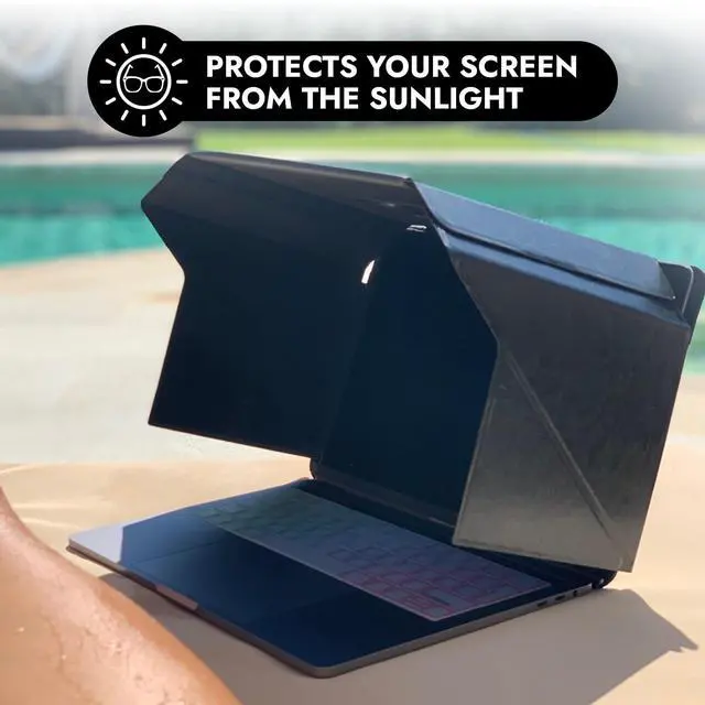 • Unique Design with Built-in Stand: The Lux Hood features a foldable stand and a convenient pocket for added functionality. Ideal for working outdoors or in public spaces like trains, planes, or coffee houses, this foldable computer shield is easy to carry and install. The elegant design ensures it seamlessly integrates into your work routine, providing both practicality and style. The first Screen Shade products on the market Patent no. D790551.