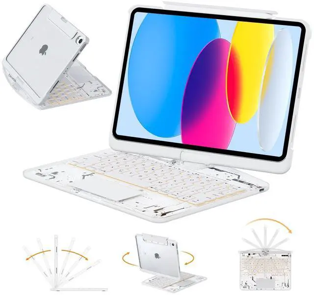 Anywhere: Transform your iPad 11 th and iPad 10 th into a portable productivity machine and switch to getting-things-done modeready to work anytime, anywhere. ^^ Precision Trackpad This for iPad 11th and iPad 10th iPad case with keyboard Navigate iPad in a whole new way with multi-gesture controls that redefine productivity; edit documents, browse the web and build presentations with unparalleled speed. ^^ Shortcut Keys + Battery Display Screen + 7-Color