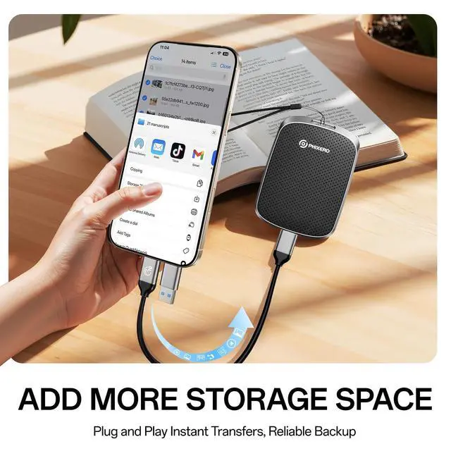 It can be easily put into a briefcase or a pocket of clothes. ^^ Seamless cross-device use Whether you are working or creating for entertainment, you can control your content at any time through your smartphone, PC and other devices with the USB C&A cable. You can connect the PHIXERO P5PLUS Portable SSD to your devices without any operation. It is convenient for everyone to use their mobile phones to directly read files for file sharing, data transmission, and video playback while working or studying. ^^ Rich Compatibility P5PLUS Portable Solid State Drive is compatible with Windows / Mac OS / Linux / Android systems and supports all devices with USB C & A ports, including PC / laptop / tablet / smart phone / TV / game console.