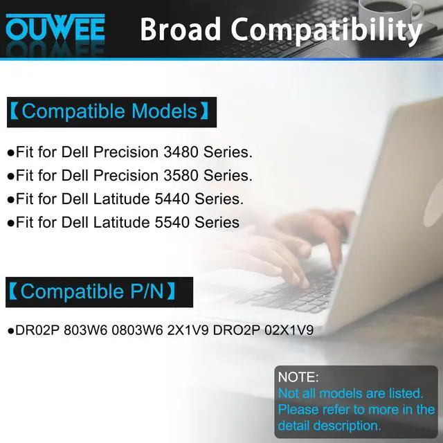 Condition: New; ^^ Fully compatible and high stabilityFit for Dell Latitude 5440 Series; Fit for Dell Latitude 5540 Series; Fit for Dell Latitude 5450 Series; Fit for Dell Latitude 5550 Series; Fit for Dell Precision 3480 Series; Fit for Dell Precision 3490 Series; Fit for Dell Precision 3580 Series; Fit for Dell Precision 3590 Series ^^ Replacement Battery Part NumbersBattery forDR02P 803W6 0803W6 2X1V9 DRO2P 02X1V9. ^^ OUWEE Perfect After-saleRest assured with 30 days money-back and 12 months Warranty; 24 x 7 email support. Any questions you can contact with us via "Your Orders" tab in account. We are committed to resolving any situation in which our product does not meet your expectations. ^^ Safe to UseAll OUWEE products are Certified by UL / CE / FCC / RoHS for safety. Strict guidelines for compatibility, strict quality control standards to ensure the true capacity, stable current and low self-discharge and standards compliance for environment safety. We are confident in the performance of the replacement battery.