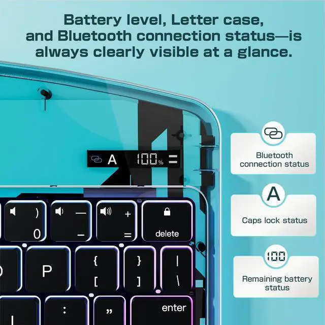 ^^ Extended Battery Life: This iPad air 11 keyboard case features a 450mAh high-capacity battery that delivers weeks of daily use on a single charge, requiring less than two hours to fully recharge. This iPad 11 air case with keyboard have a smart power indicator clearly displays the remaining battery life in real time, effectively eliminating low-battery anxiety.