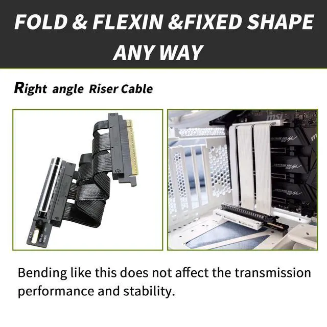 This PCIE GEN5 riser cable solution was originally developed Data center application; on some specific system, this riser cable can support GEN5 data transmission with 1 meter length. ^^ This cable supports Nvidia, AMD, Intel and all other gaming and professional GPU, without setting up the PCIE port to lower generation speed in BIOS. Excellent compatibility for GEN5, GEN4, GEN3 and even earlier versions. ^^ Built with low loss Twinax ribbon cable - Aluminum shielded cable, double layers construction, flexible and folderable. ^^ It will need at least 6 slots' space to install this GPU vertical Mount bracket, before you order this Kit, It is recommended to check the space inside your PC case, it is also recommended to use Water-cooled radiator so as to avoid the vertically install GPU conflicts with the Air-cooled radiator.