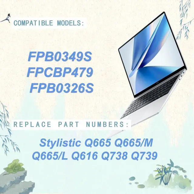 TRUE CAPACITY, LASTING PERFORMANCERigorously tested to match OEM standards, this Li-ion battery delivers a true 38Wh- 11.1V capacityso you get dependable power that wont fade when you need it most. ^^ BROAD COMPATIBILITYcompatiable with for Fujitsu Stylistic Q665 Q665/M Q665/L Q616 Q738 Q739 ^^ part numbers: FPB0349S FPCBP479 FPB0326S ^^ Security All KYTD products have obtained multiple safety certifications and comply with compatibility standards, stringent quality control, and environmental safety requirements (including protection against overheating, short circuits, and overload). We are highly confident in the performance and reliability of our compatible laptop batteries. ^^ Customer First Rest assured with 30 days Refund and 12 months Warranty; 24 x 7 email support. We specialize in providing quality power products and quality customer service.