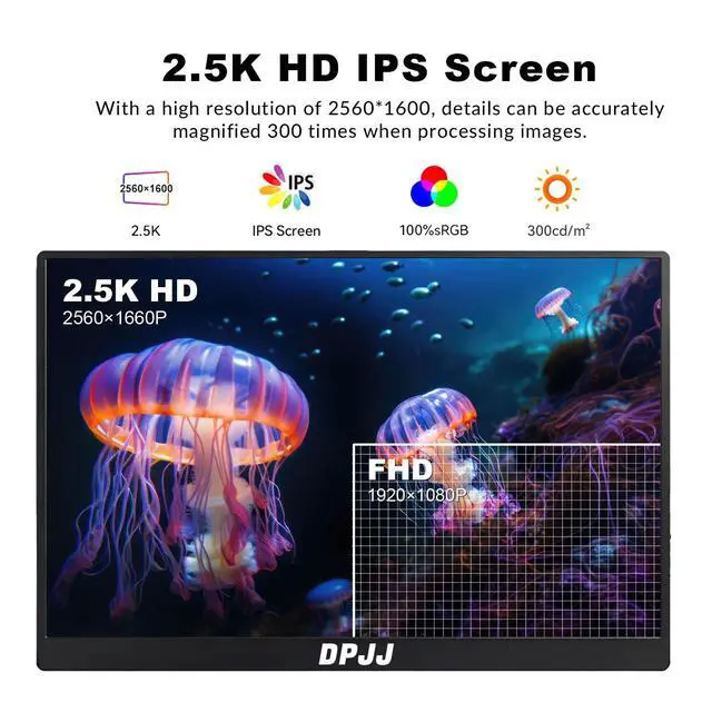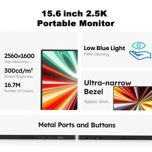 DPJJ 15.6" 2K 60Hz Portable Gaming Monitor, 2560x1600 QHD 400 Nits IPS Screen with Smart Cover, VESA Mountable, HDR FreeSync Eye Care External Display for Laptop PC Mac Phone PS5 Xbox