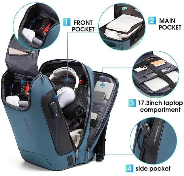 ANTI THEFT BACKPACK: The computer backpack is equipped with a smart secure lock that is made of high strength zinc alloy with a solid, compact body to prevent theft and well safeguard all your valuables securely. The password lock is easy to set (Includes instructions), please see A+ for the detailed instruction. ^^