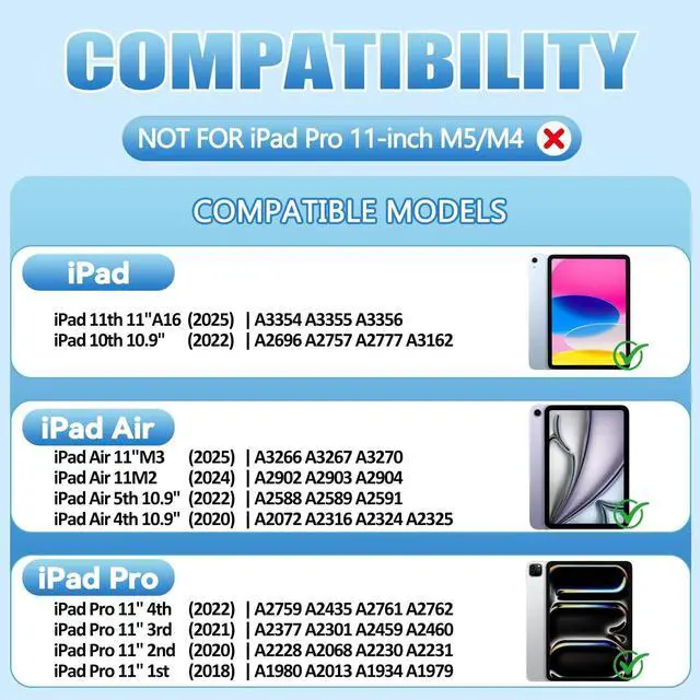 Compatibility - This premium slim keyboard case is compatible with 2022 iPad 10th Generation 10.9 inch (A2696, A2757, A2777), 2025 iPad 11th A16 - (A3354, A3355, A3356), 2025 iPad Air 11 Inch M3 - (A3266, A3267, A3270) 2024 iPad Air 11-inch M2 (A2902, A2903, A2904), 2022 iPad Pro 11 inch 4th Generation (A2759, A2761, A2435, A2762), 2022 iPad Air 5th Gen 10.9 inch (A2588, A2589, A2591), 2021 iPad Pro 11 inch 3rd Generation - (A2377, A2459, A2301, A2460), 2020 iPad Pro 11 inch 2nd Generation - (A2228, A2068, A2230, A2231), 2020 iPad Air 4th Gen 10.9 inch (A2316, A2324, A2325, A2072), 2018 iPad Pro 11 inch 1st Generation - (A1980, A2013, A1934, A1979) ^^ Multi-Touch Trackpad - iPad 10th generation case with keyboard features a large multi-touch trackpad for convenient navigation and flexible gesture control.