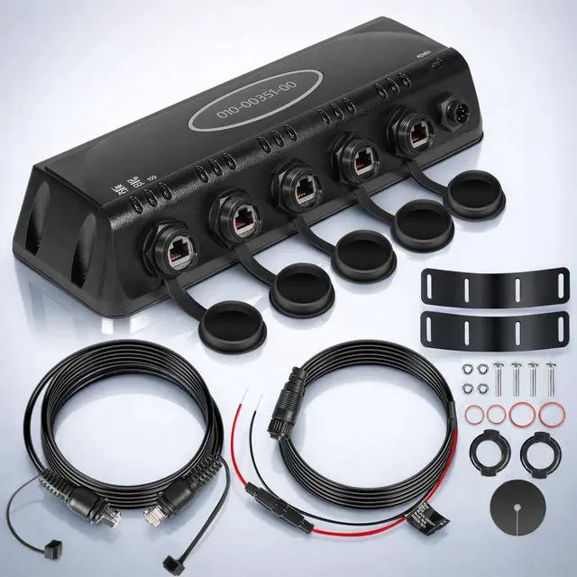 For GMS 10 Network Port Expander (Network Device) (010-00351-00), 100M Ethernet Switch Compatible with Garmin Marine Network Devices, Plug and Play Waterproof Hub for Chartplotters MFDs SensorsThis Marine Network Port Expander is a professional-grade marine Ethernet switch designed to expand onboard marine networks by connecting multiple chartplotters, multifunction displays (MFDs), and marine sensors. Built as a compatible replacement for Garmin Marine Network systems, it delivers stable 100-Mbit high-speed data transfer, allowing seamless sharing of sonar, mapping, weather, and navigation data. Wide Compatibility & System ExpansionDesigned for use with GMS 10 Garmin Marine Networkcompatible devices, this network port expander supports chartplotters, MFDs, radar, sonar, and marine sensors.