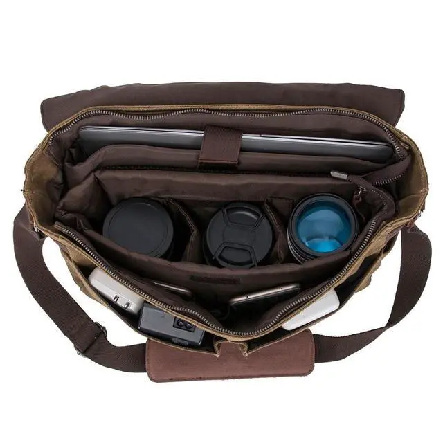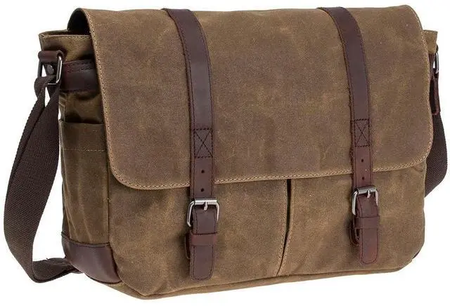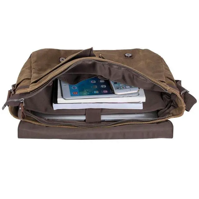 HIGH-GRADE MATERIALS: Waterproof Waxed Canvas Men's Vintage Genuine Leather Laptop Messenger Bags. martexin original wax canvas + superior cowhide leather+bronze hardware. Durable Leather and adjustable shoulder strap ^^