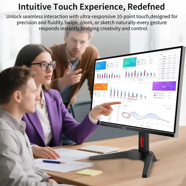 ^^ - High brightness of 400 nits ensures clear visibility even in well-lit environments, with wide viewing angles and excellent color performance. ^^ - Fully adjustable stand allows for height adjustment, tilt forward and backward, and 90-degree rotation to portrait mode for flexible setup. Ideal for creative professionals, business presentations, interactive kiosks, education, and home office use with precise touch control. ^^ - Easy to install and use with VESA mount compatibility (100mm x 100mm) for wall or monitor arm mounting.