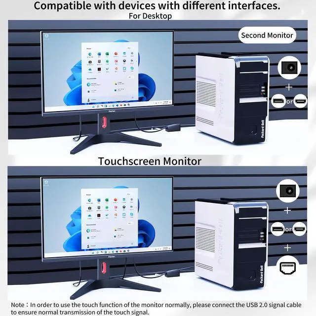 - 27-inch 4K UHD (3840 x 2160) display delivers stunning image clarity, vibrant colors, and sharp details for work and entertainment. ^^ - Intuitive 10-point multi-touch screen supports smooth gestures like tap, swipe, and pinch, compatible with Windows and major operating systems. (Not macOS) ^^ - Features versatile connectivity options including DisplayPort, HDMI, and USB Type-C port for video, data, and power delivery in one cable. Includes an external power adapter (DC power supply) to ensure stable and reliable operation; USB-C alone may not provide sufficient power.