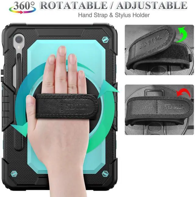 [Compatibility] Protective Case for Samsung Galaxy Tab S10 Lite 10.9 -inch 2025 (SM-X400/ X406B); for Galaxy Tab S10 FE 10.9 -inch 2025 (SM-X520/ X526B/ X528U); for Galaxy Tab S9 FE 10.9 -inch 2023 (SM-X510/ X516B/ X518U); for Galaxy Tab S9 11-inch 2023 (SM-X710/ X716B/ X718U); Please confirm the model before purchase this case for samsung tablet ^^ [Full-Body Protection + Screen Protector] Combine soft silicone outer with hard inner, case for Samsung S10 Lite/ S10 FE/ S9 FE Tablet Case with screen protector and port covers, provides full-body protection for Galaxy Tab S10 Lite/ S10 FE/ S9 FE 10.9 inch from scuffs and impacts, while easy-access to all buttons/camera, suited for outdoor person or kids ^^ [Versatility Stand + Pen Holder] With 360 rotating adjustable kickstand stable at multi-angles, case for Galaxy Tab S10 FE/ Tab S10 Lite/ Tab S9 FE/ Tab S9 for landscape/portrait viewing, typing; With pen holder easy storage for note-taking, case for Samsung Tablet S10 Lite/ S10 FE/ S9/ S9 FE 5G case suited for classes/meetings, works or play with-kid ^^ [Adjustable Hand & Shoulder Strap] Hold device comfortably one-handed with soft hand strap for presentations, navigation, document scanning; Adjustable, Detachable shoulder strap for a wide-range of users, carry your device by side and hands-free at all times, case for Galaxy Tab S10Fe/ S10Lite/ S9Fe 10.9 '' tablet case suited for business/travel ^^ [SERVICE] SEYMAC Stock case for Samsung Galaxy Tab S10 Lite/ S10 FE/ S9 FE/ S9 offers 6 months maintenance or replacement service for product defects; If you encounter any problems or concerns during use, such as size mismatch, installation guide, return or exchange, product damage, etc, please let us know immediately and we will help you solve the problem within 24 hours